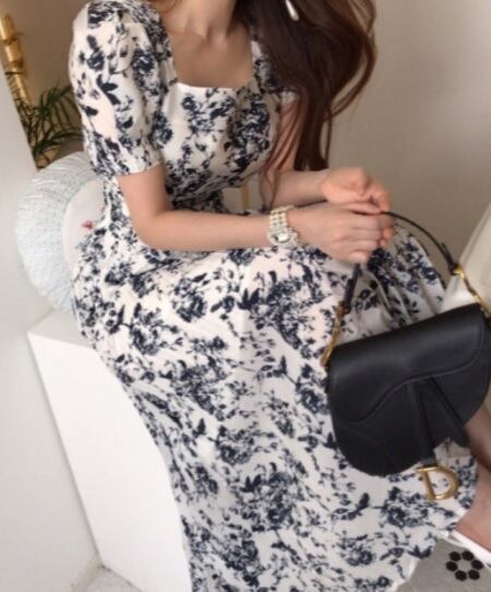 ロングワンピース 細見え 夏 普段使い ルーム お出かけ デート 白 スクエアネック 花柄 大人 清楚 可愛い 上品 きれいめ レトロ 韓国 ゆったり Aライン 半袖 ミモレ丈 人気 トレンド 10代 20代 30代