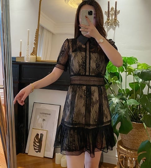 ミニワンピース 総レース 細見え 夏 普段使い お呼ばれ お出かけ デート 黒 襟付き 花柄 刺繍 大人 セクシー 可愛い 上品 クール 透け感 ゆったり Aライン 半袖 ショート丈 人気 トレンド 10代 20代 30代