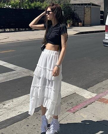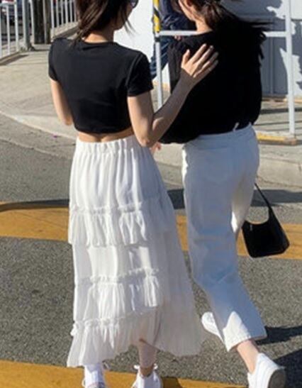 レイヤードスカート ハイウェストスカート ロング丈 無地 白 Aライン 夏 リゾート 大きいサイズ 可愛い シンプル 人気 10代 20代 30代 お出かけ デート 上品 きれいめ 清楚 大人女子 レトロ キュート トレンド