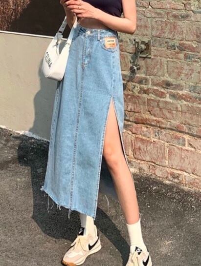 デニムスカート ミモレ丈 綿 ブルー 黒 Aライン スリット 夏 大きいサイズ 可愛い シンプル 人気 10代 20代 30代 お出かけ デート クール カジュアル 大人女子 かっこいい セクシー トレンド