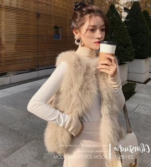 アウター ファーベスト ショート丈 アプリコット 秋冬 ノースリーブ 10代 20代 30代 お出かけ デート シンプル 個性的 トレンド 大人女子 キュート 可愛い カジュアル ふわもこ 暖かい
