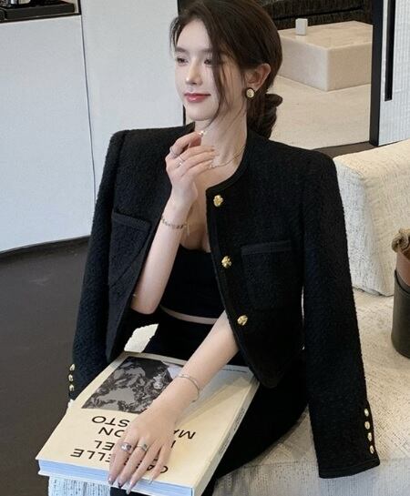 アウター ノーカラージャケット ショート丈 黒 大きいサイズ 春 秋 長袖 10代 20代 30代 お出かけ デート 通勤 OL 仕事 オフィス シンプル トレンド 大人女子 カジュアル フォーマル