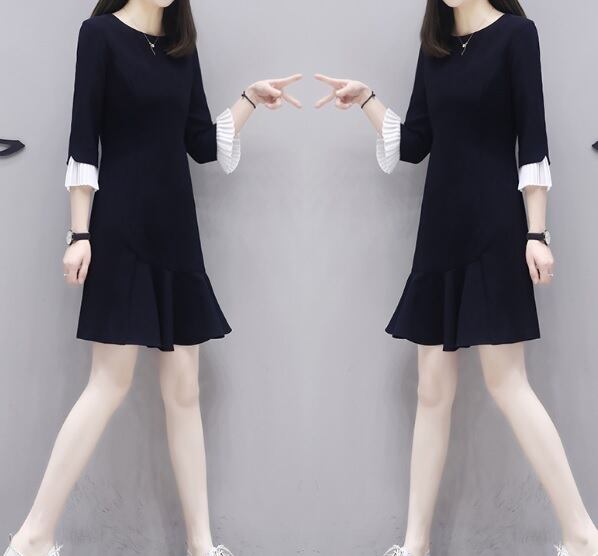ミニワンピース 細見え フレア 春 普段使い お出かけ デート 黒 ラウンドネック 大きめ キュート 大人 清楚 可愛い 上品 フェミニン ゆったり Aライン 長袖 フリル袖 ショート丈 人気 トレンド 10代 20代 30代