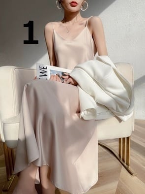 キャミソールワンピース ドレス 細見え 夏 お呼ばれ パーティー 結婚式 二次会 お出かけ デート 黒 白 ベージュ ピンク グリーン ブルー Vネック 大きめ 無地 大人 清楚 可愛い 上品 シンプル とろみ 光沢 Aライン ノースリーブ ひざ丈 ミモレ丈 人気 トレンド 10代 20代 30代