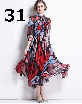 ロングワンピース 細見え 夏 お呼ばれ 普段使い お出かけ デート 黒 白 グリーン ブルー イエロー ピンク レッド シルク ボウタイ 大きめ 花柄 大人 清楚 可愛い 上品 フェミニン Aライン 長袖 ミモレ丈 人気 トレンド 10代 20代 30代