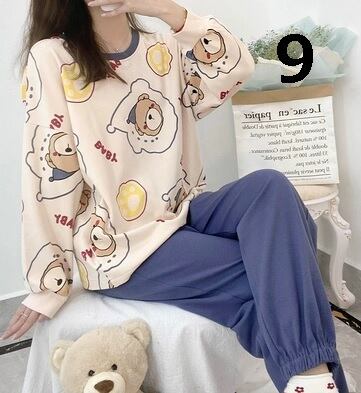ルームウェア パジャマ 寝間着 可愛い オシャレ 楽 リラックス 長袖 ラウンドネック 綿 黒 グレー アプリコット パープル レッド 無地 チェック柄 キャラクター クマ 部屋着 お家時間 セットアップ 上下セット 春 秋 大きめ 大人女子 シンプル レトロ キュート 人気