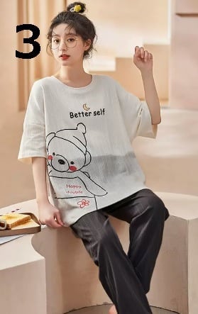 ルームウェア パジャマ 寝間着 可愛い オシャレ 楽 リラックス 半袖 ラウンドネック 綿 白 黒 ピンク ブルー アプリコット ロゴ キャラクター クマ プリント チェック柄 部屋着 お家時間 セットアップ 上下セット 春夏 大きめ 大人女子 シンプル レトロ キュート 人気