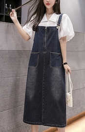 ジャンパースカート サロペット ミディアム丈 無地 デニム 黒 ブルー ネイビー Aライン スリット ポケット付き 夏 大きいサイズ 可愛い シンプル 人気 10代 20代 30代 お出かけ デート カジュアル 着回し 楽ちん キュート 大人女子 トレンド