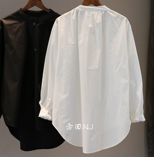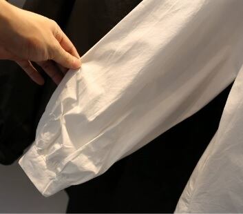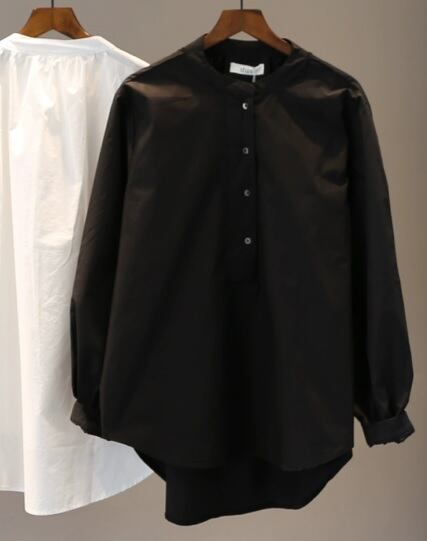 トップス シャツ ブラウス おしゃれ シンプル ゆったり 白 黒 綿 無地 ラウンドネック アシンメトリー 長袖 バルーン袖 春 秋 大人可愛い 10代 20代 30代 お出かけ デート お呼ばれ 通勤 仕事 オフィス OL トレンド 人気
