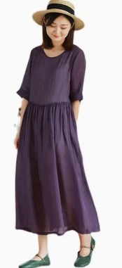 ロングワンピース 細見え 春夏 普段使い おしゃれ お出かけ デート 白 パープル ラウンドネック 大きめ 無地 大人 カジュアル 清楚 可愛い 上品 シンプル ゆったり Aライン 長袖 ミモレ丈 人気 トレンド 10代 20代 30代